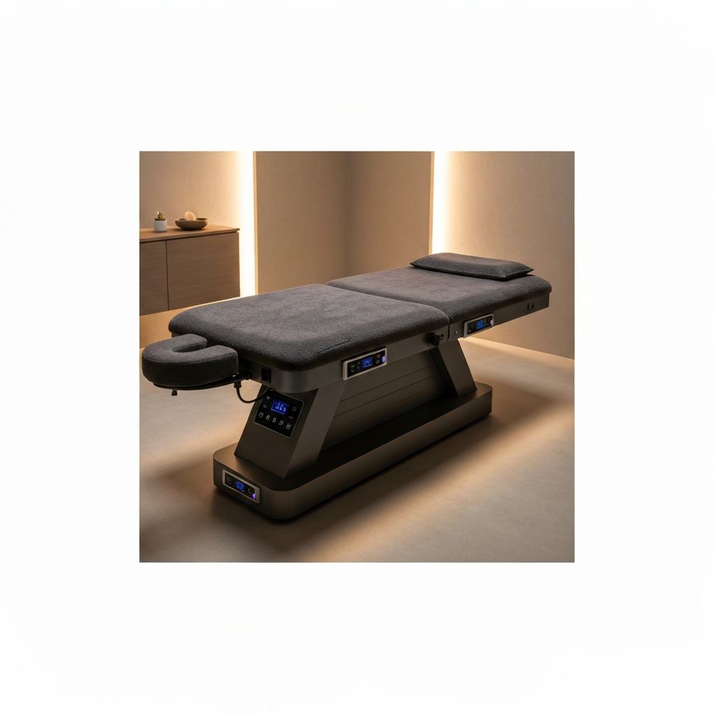 Advanced massage table with built-in heating system and adjustable angle settings.