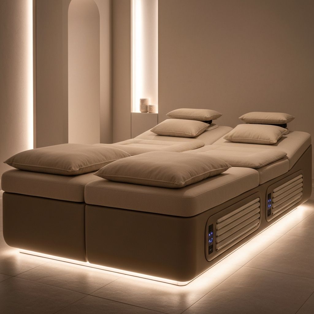 Spacious double massage table designed for couples therapy and partner relaxation sessions.