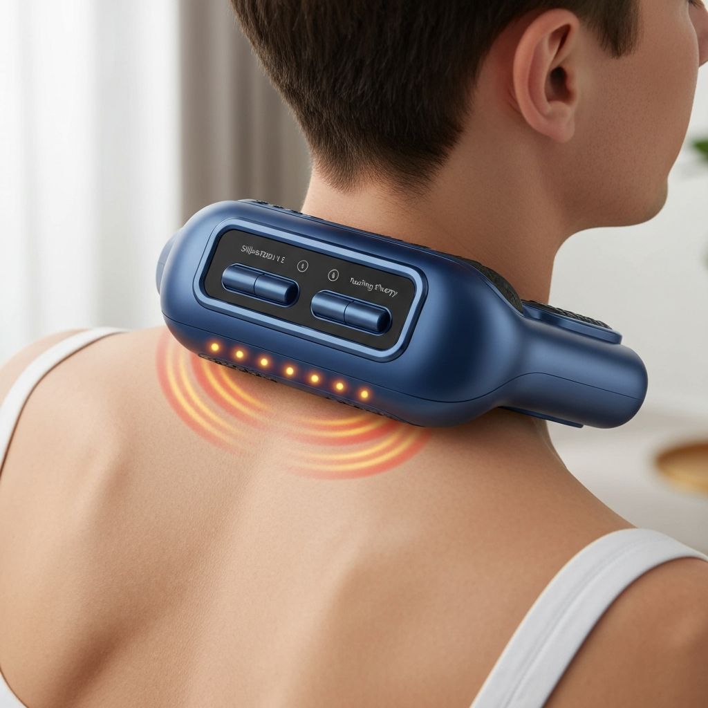 Advanced shiatsu massager targeting neck, shoulders, and upper back with heating therapy.